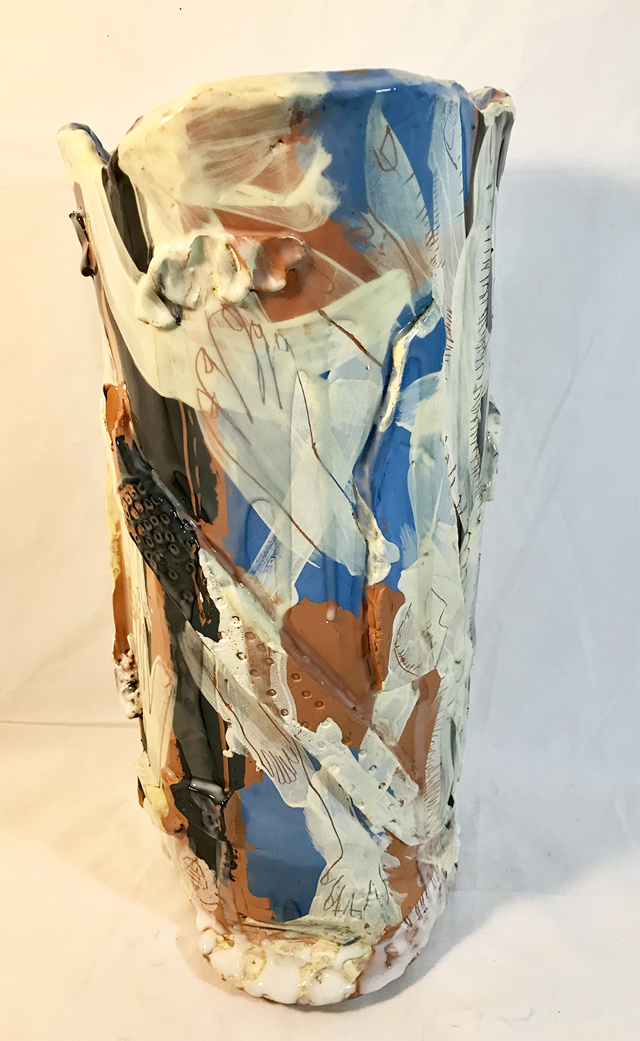 partially glazed, engobe painted earthenware, 43 x 30 x 30 cm, 2022