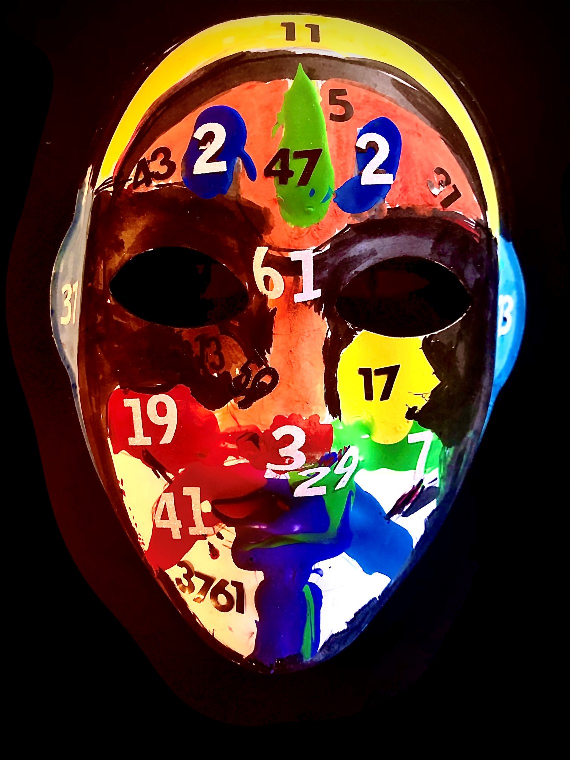 The mask ‘Atlas of My Mind’ represents one of the main emotions of ‘Ma Machine d’Emotions’; Shiver. The emotion Shiver is almost weightless and represented by the prime number 3761, the 523rd prime number. Shiver has an emotional weight of 2, almost the opposite of Fear (emotional weight 3739).