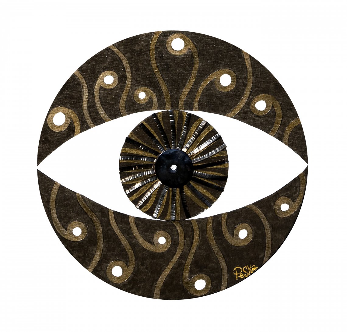 Lo stesso equilibrio che ha cercato e trovato Peska, mettendo insieme tutte le discipline che hanno accompagnato la sua evoluzione artistica fino a questo momento; come in un collage, i componenti delle opere fanno parte della sua storia personale, che da bambina voleva fare la fotografa, da preadolescente si innamora della pittura ad olio, frequenta l’istituto d’ arte con indirizzo arte del tessuto, si specializza con un corso di tecnico del restauro, scopre la ceramica e nel frattempo lavora nell’azienda metalmeccanica di famiglia tagliando ferro.