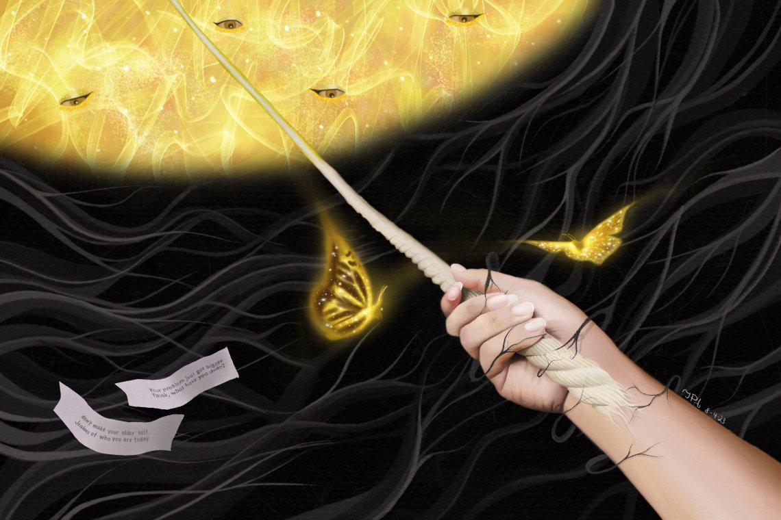 This piece doesn’t really have a meaning to learn with this digital painting, it's more of a decision, with so little time. The hand is hanging on to a rope, connected to the yellow gold light, or the beauty and happiness of life. Where now I am at the edge of the rope, entering the darkness. However, people say to reach at your highest point in life, you must go through the worst, to then get to the best. However, I'm not sure if that is true, because I'm just entering the dark side, leaving my childhood ‘innocence;’ or the light and switching to my older-teen life, where you learn the world is not just sunshine and rainbows. The hand, or me, decides whether I should be content, trusting what other people say, letting go of the rope, to ‘grow,’ or, should I hang on for as long as I can? I feel like I'm betraying my chinese fast food fortunes I got as a young child, telling me to not be jealous of my life now rather than later, and to make me rise even after the fun, exciting past. I also don’t want to just say goodbye to my innocent, stress free younger past, watching me ascend from above. I’m ‘just a kid’ overall, yet I don’t feel like one. So, should I let go?