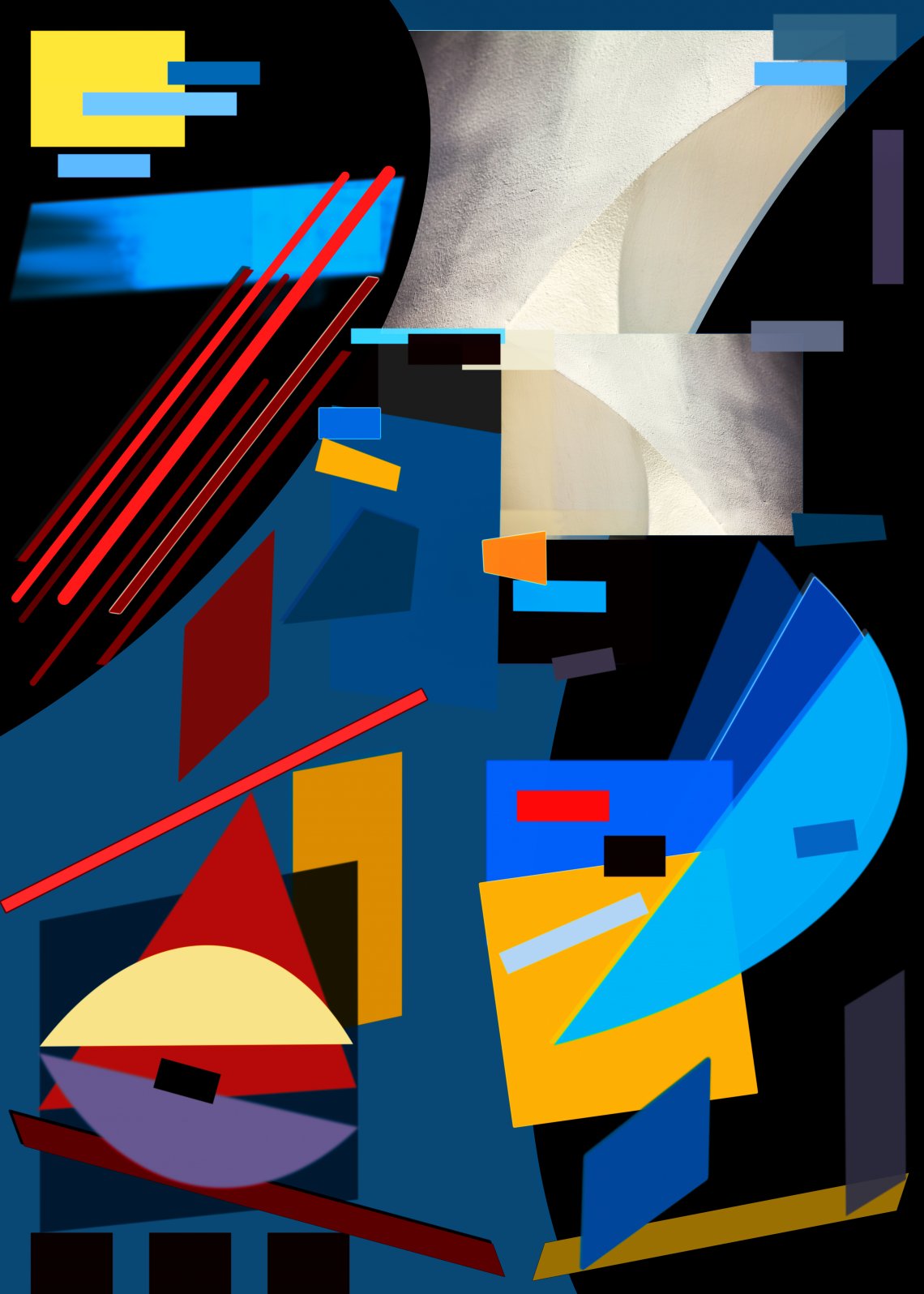 I used my vision to create a new image surrounding the Oculus at the World Trade Center Hub, designed by Santiago Calatrava. I started with an abstract photograph of the Oculus based on fundamental geometries, which I have transformed into a new abstract image by overlapping forms, creating textures, and blurring layers. This work captures the multiple functions of the place, from transportation hub to contemplation space and from memorial to selfie spot and performance center, united by geometries that define the space.