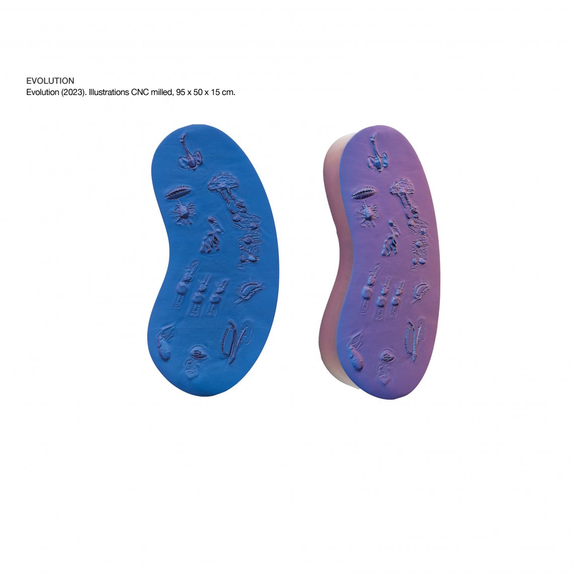 Evolution (2023). 95 x 50 x 15 cm. Illustrations CNC milled.