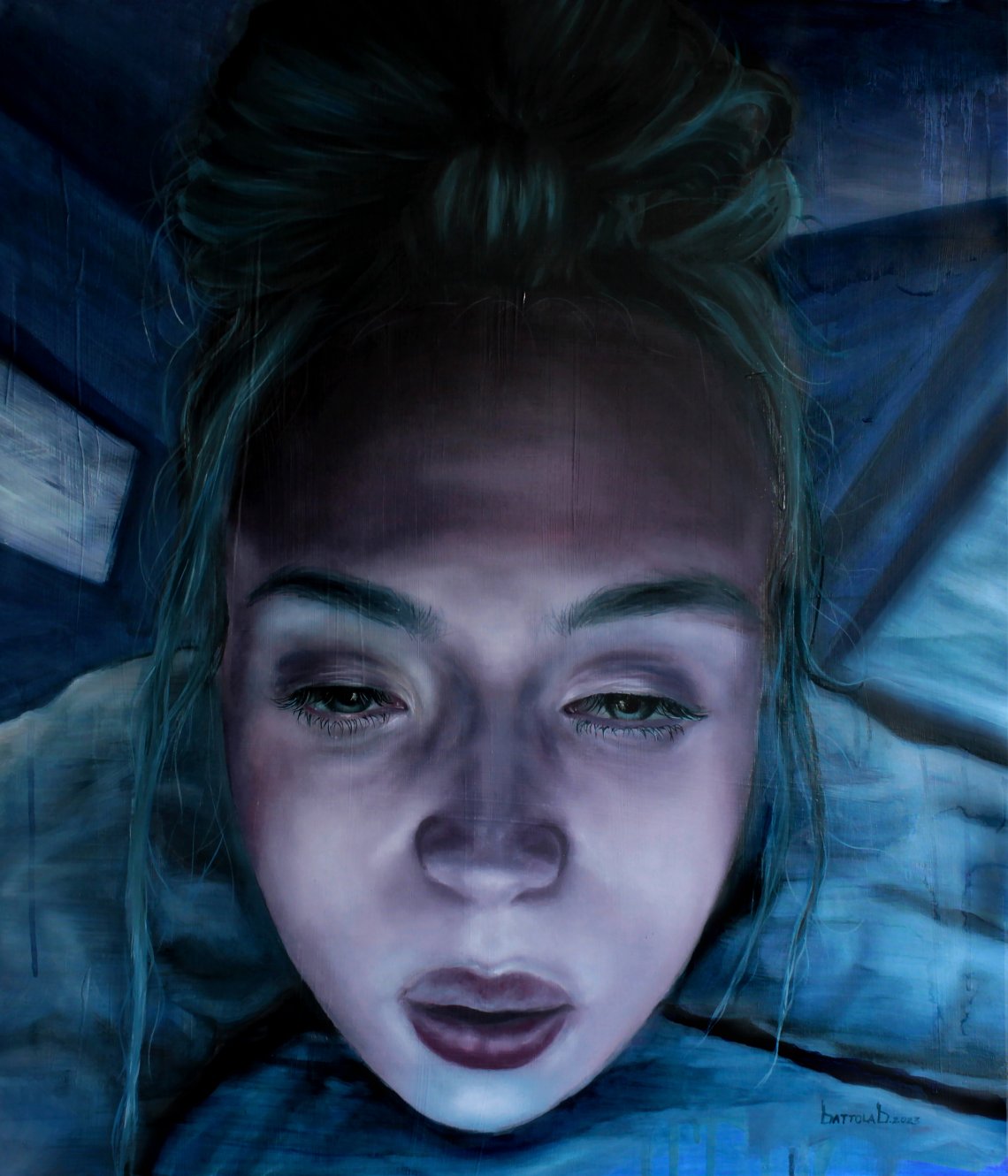 Nell’opera è riprodotto il volto di una ragazza illuminato dalle luci artificiali di un monitor. Lo sguardo si perde all’interno di una realtà virtuale in cui oggi sempre più individui passano la maggior parte delle proprie giornate. Come si deduce dal titolo “In LIVE” la ragazza è collegata con la webcam intenta a esporre la propria vita a persone che neanche conosce attraverso le sempre più diffuse “dirette live”. L’autore dunque vuole indagare il processo mentale che spinge l'essere umano moderno a trascorrere il proprio tempo in compagnia di amicizie virtuali istaurando rapporti fluidi e che spesso diventano pericolosi. Il volto della ragazza è il volto seducente e sfuggente della società liquida, metafora coniata dal sociologo Zygmunt Bauman, per descrivere la modernità in cui viviamo, individualizzata, incerta, flessibile, vulnerabile, nella quale a una libertà senza precedenti fanno da contraltare una gioia ambigua e un desiderio impossibile da saziare.