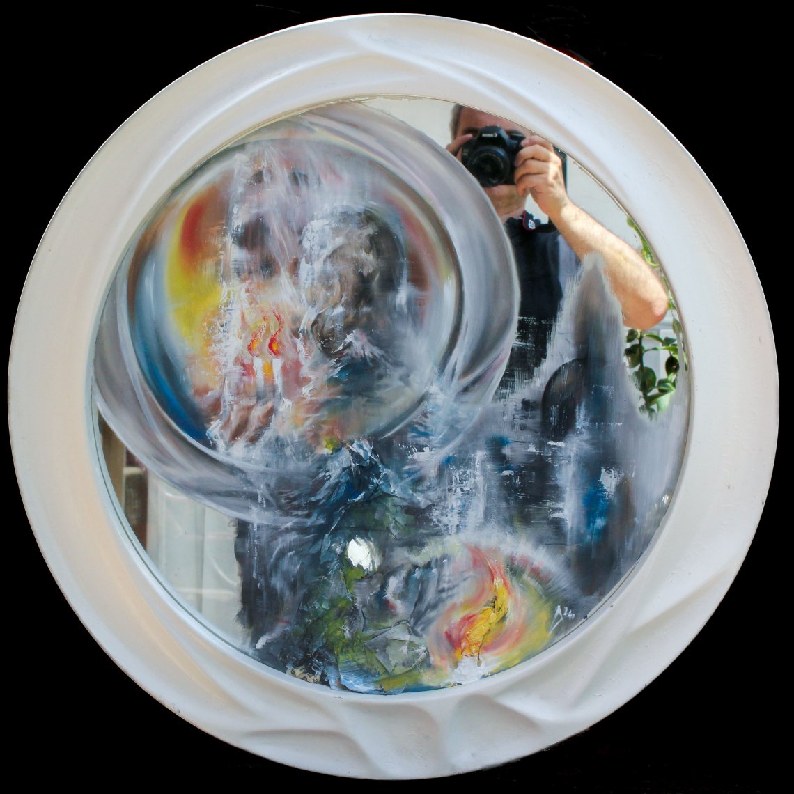 Attualmente dipingo su superfici di vario genere, utilizzo spesso degli specchi come supporto, in tal modo gli oggetti stessi che utilizzo, diventano fonte di ispirazione: "campi magnetici".