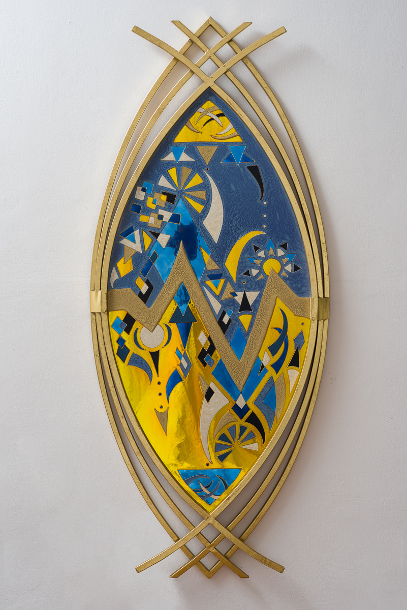 I use a technique of relief outliners and glass paints on mirrors to create geometric abstractions. The use of vibrant colors and different textures that vary from opaque to transparent, allows multiple perspectives.