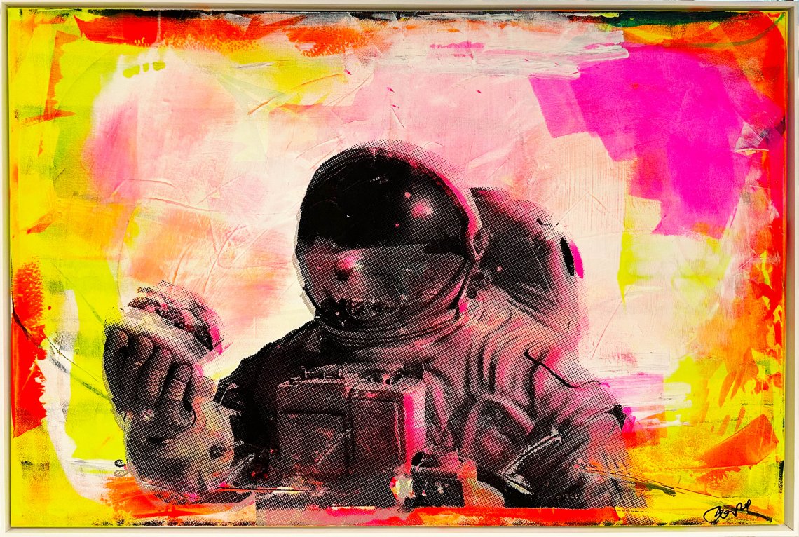 Das Original ist in Neonfarben gemalt, diese sind aber technisch nicht darstellbar. Das Original sieht also anders/besser aus. Leider ist es nur im, Original richtig anzusehen.