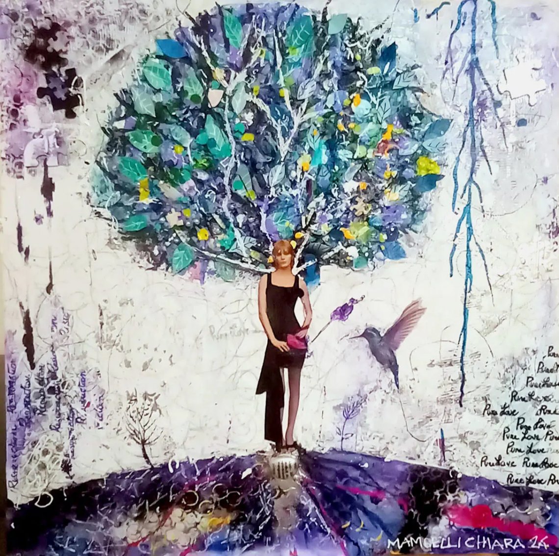 L'opera, materica e fortemente evocativa, rappresenta una "donna - albero", a simboleggiare la forza, la tenuta emotiva e la solidità che le figure femminili sono nella nostra società. Il contrasto tra fragilità apparente e solidità esistenziale è posto ancor più in risalto dalla grazia e dall'esile figura eterea su cui si sviluppa una chioma densa di colori e di elementi materici, molto complessa e articolata. La leggerezza e l'equilibio sono rappresentati dal colibrì, che sfiora la "donna - albero" quasi a dimostrarle una vicinanza d'intenti o un proposito futuro.