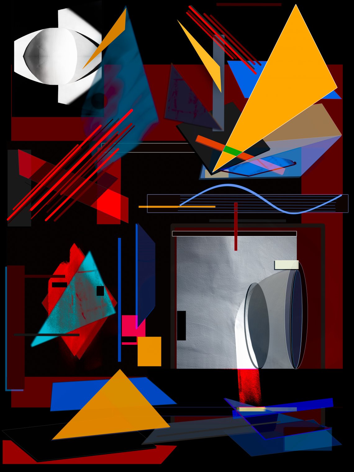 Recomposition No. 16 combines photographs, digital painting, and geometric forms. It will be produced in a limited edition of five on archival pigment paper.