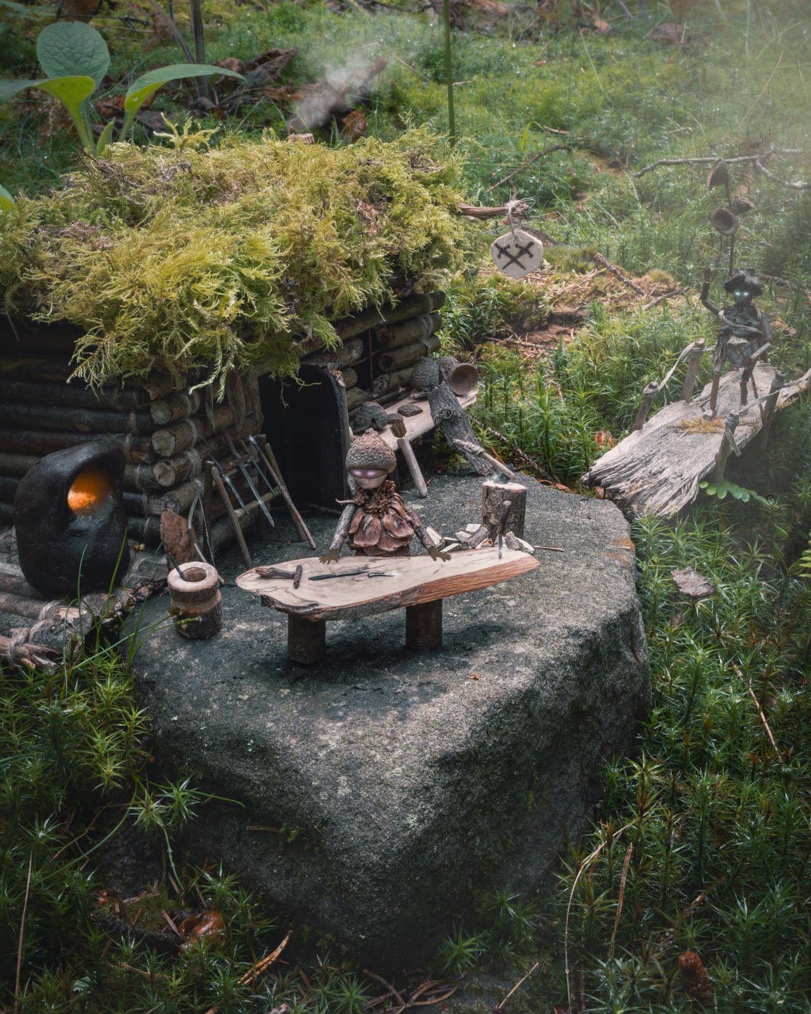 characters and props made from materials gathered in nature