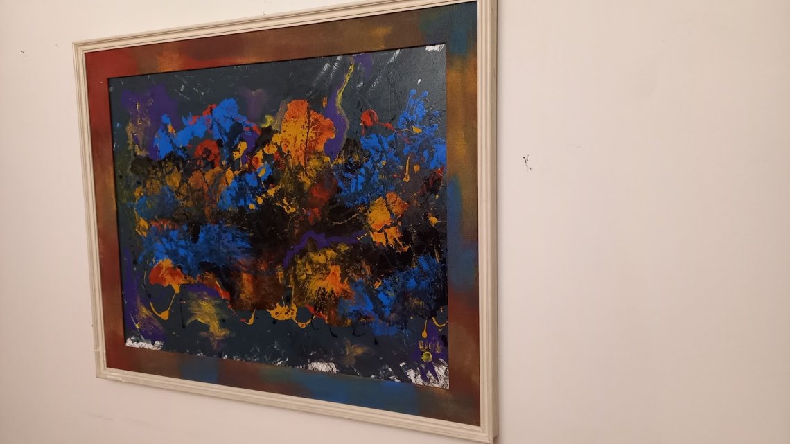 Il quadro nasce dalla rappresentazione grafica della equazione matematica dove bisogna applicare la regola (blu oltremare) trovare l'incognita (giallo napoli) con il procedimento manuale (rosso carminio). ovviamente questa complessità viene rappresentata con un insieme di colori che racchiudono in se l'aspettativa, l'incognita del risultato, lo studio del metodo. in fin dei conti è l'allegoria del quesito, rivisitato in termini pittorici e cromatici.