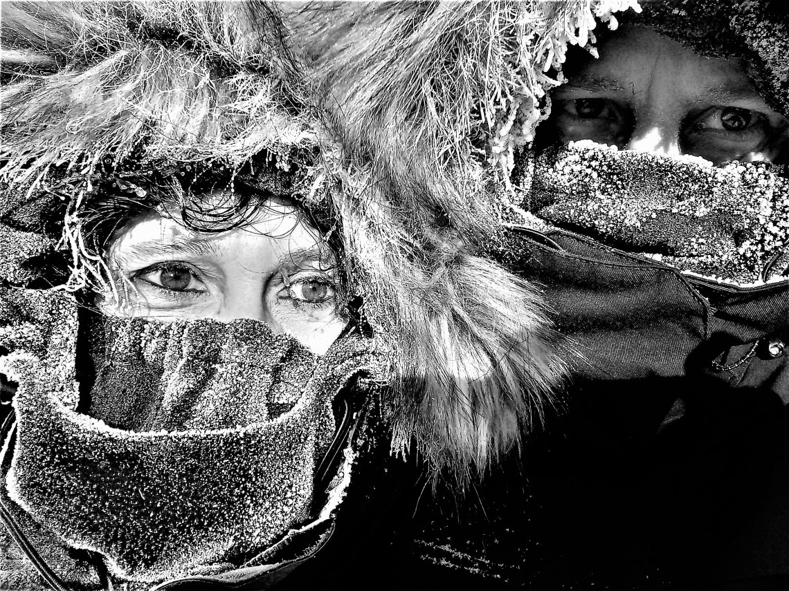 Cette photographie fait partie d'une série intitulée "Contrastes" . Elle a été réalisée à partir d'un téléphone portable et retravaillée ensuite en noir et blanc en intensifiant jusqu'à un point voulu l'image . Les traits sont ainsi soulignés, comme appuyés à la manière d'un dessin au fusain. Il s'agit d'un selfie en pleine nature. La photo a été prise par -30°, à Saint-Eugène-D'Argentenay dans le Nord québécois. Elle a déjà fait l'objet d'une sélection dans le cadre du concours "Monochrome awards" en 2023 à la rubrique "Portrait amateur."