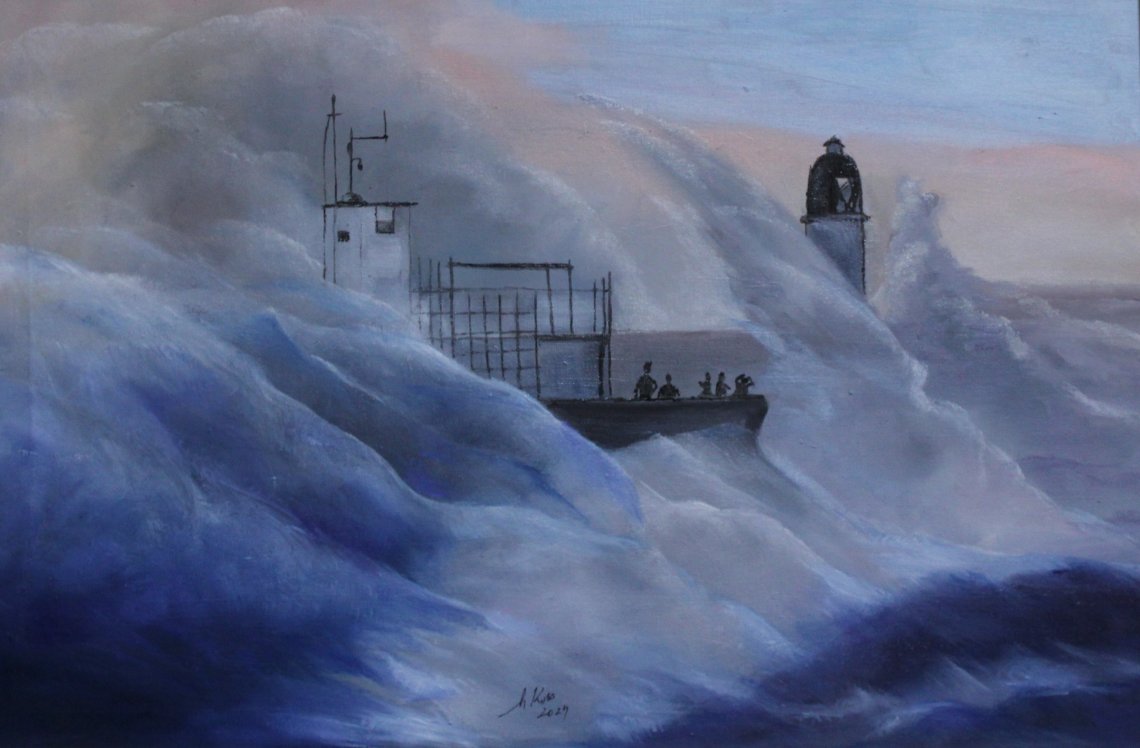 "Storm" is a dramatic and a powerful painting that vividly portrays the intensity of a fierce storm. The painting may depict the storm's destruvtive power as it rages across the landscape, crashing waves reflecting the storm's fury. The motion in the artwork is palpable, converying the relentless movement of the storm's. The viewer feels immersed in the tempest, experiencing both its overwhelming force and its natural beauty. The painting serves as a reminder of nature's ability to both devastate and awe.