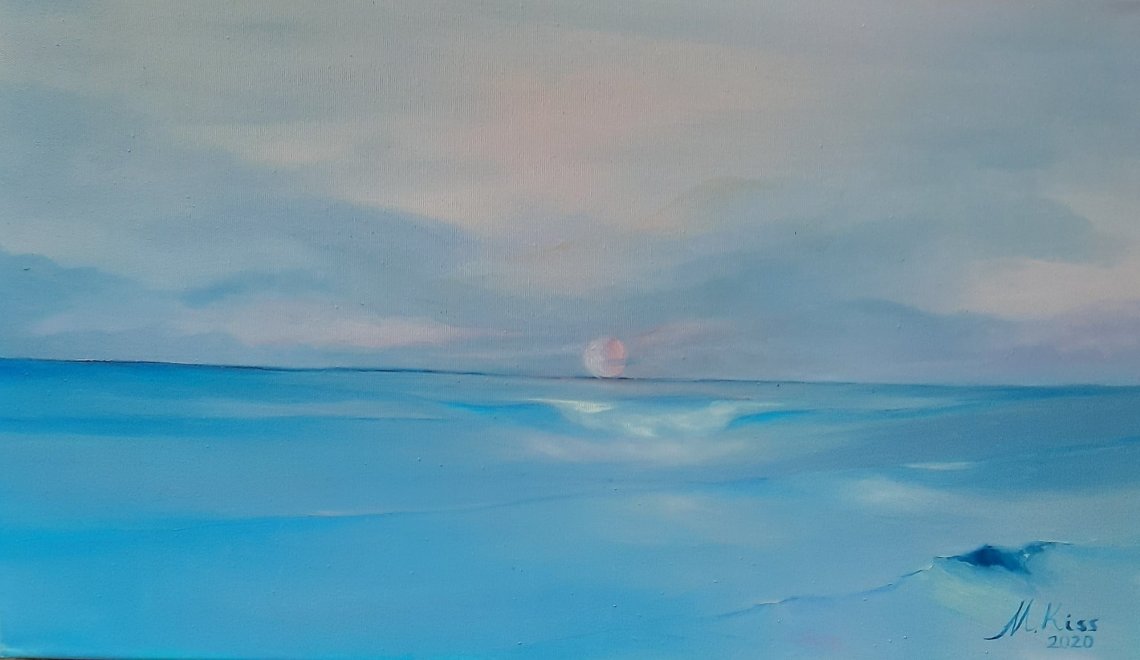 " Sunrise on the Sea" is a serene and breathtaking paiting that captures the tranquil beauty of the early morning hours by the sea. The canavas is bathed in warm, hues as the first rays of the sun break over the horizon, casting a soft glow on the shimmering waters. The calm sea reflects the pastel colors of the sky, with gentle waves. The air seems to be filled with a sense of peace and renewal, as the world slowly wakes up to the promise of a new day. The delicate blending of soft pinks, and blues creates a sense of harmony, inviting the viewer to pause and appreciate the simple, timeless beauty of natrure's dawn.