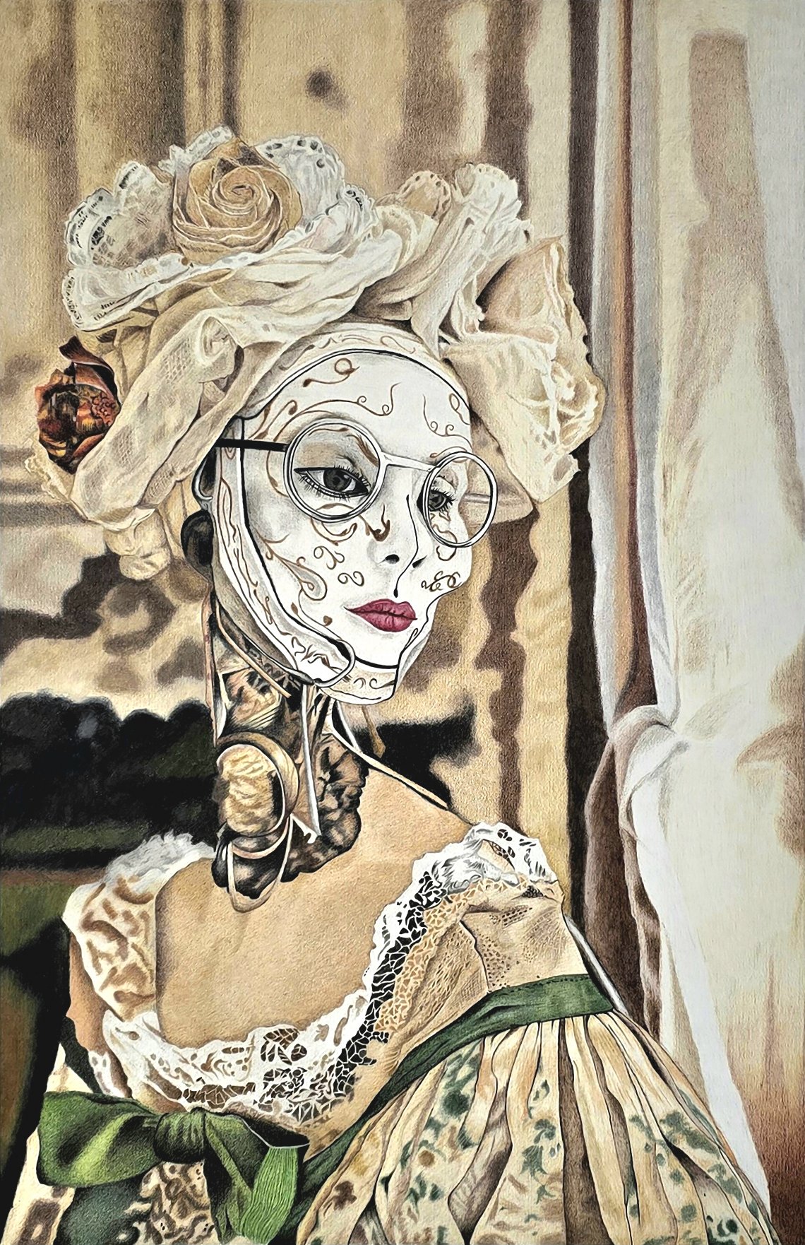 Clockwork Elegance merges Victorian sophistication with steampunk innovation, depicting a figure adorned with lace and mechanical details. This piece reflects the interplay of tradition and technology, exploring themes of transformation, identity, and the enduring beauty of evolution.