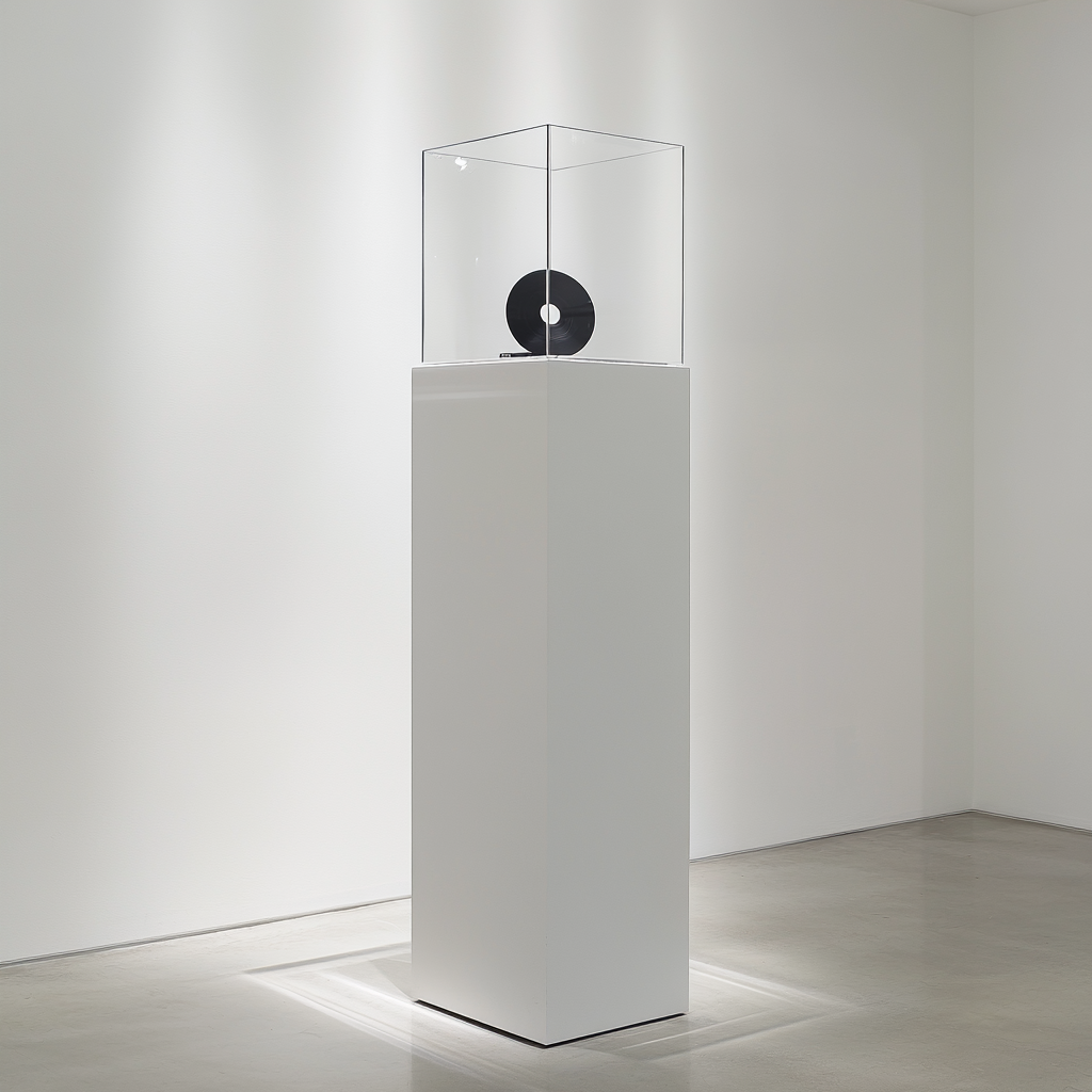 31:59 sound is a philosophical art experiment — a 31-minute and 59-second audio file created by an artificial intelligence, with the only input being the word "sound", that remains unheard - even by the artists. The only copy is locked on a black CD-R encrypted with an irretrievable password so complex that it would take far beyond the age of the universe to break it, it echoes Schrödinger’s thought experiment: Occupying a state of potential—art that exists in a realm of infinite possibilities but is forced to remain unknowable and unheard. This piece confronts us with the essence of creation, where the artist’s role is relinquished to an algorithm, and the art’s existence itself is in question: Is art defined by creation or perception?