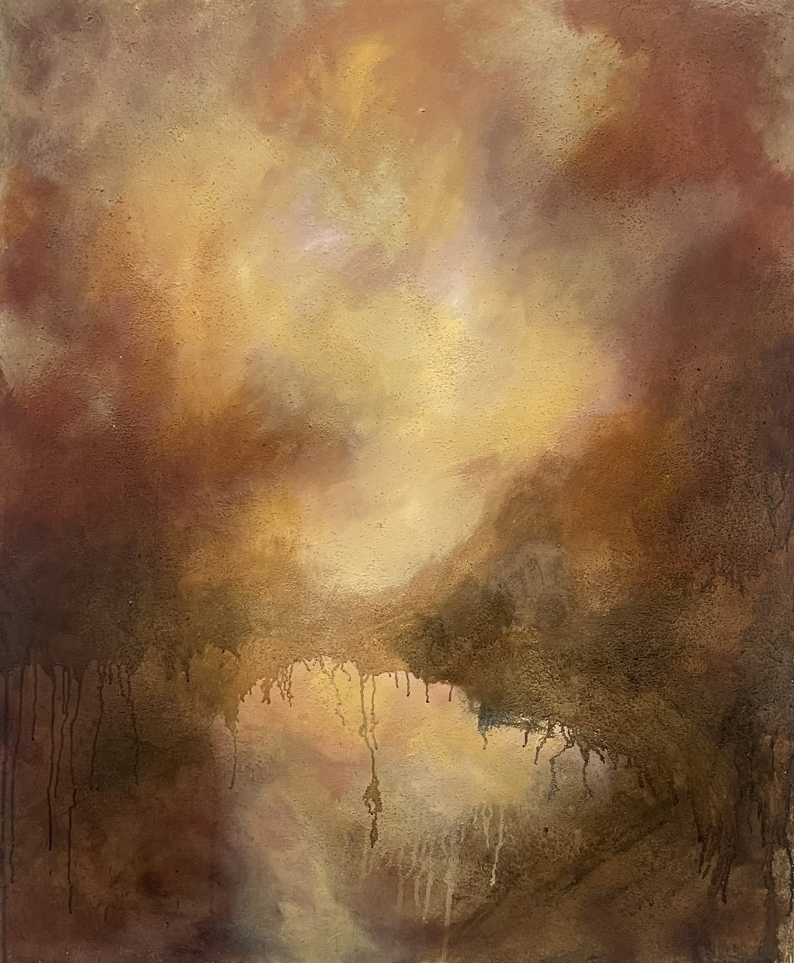 tecnica mista su tela: acrilici, olii, pigmenti, sabbia, carta.