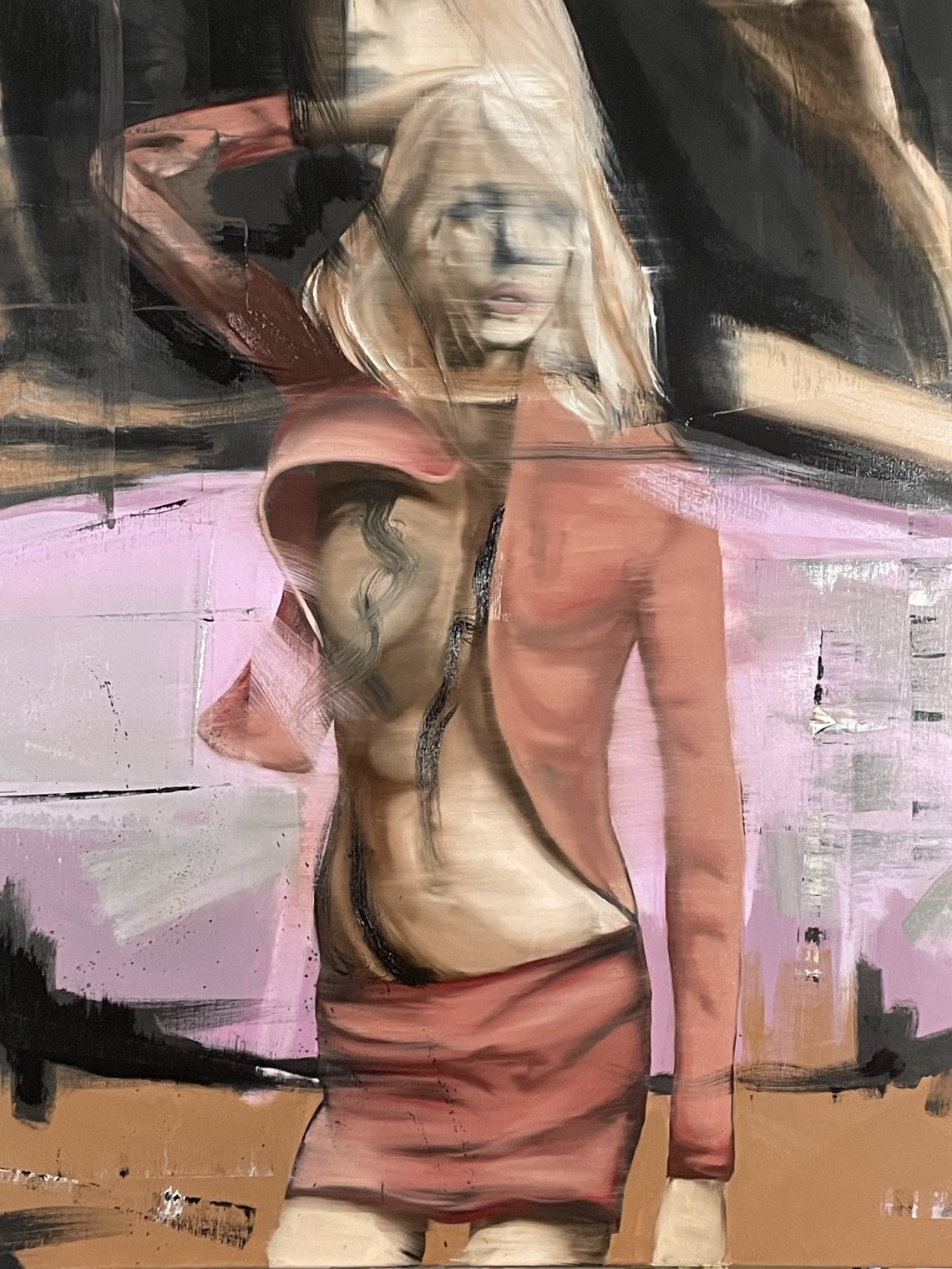 Brushes dancing between careful work and sometimes not so carefully - rawer, painterly materials are used then before, rugged brushes are transformed in hazy, dream like canvases with and otherworldly appliance, akin to spirit paintings, or foggy imaginations of what lies beneath it.