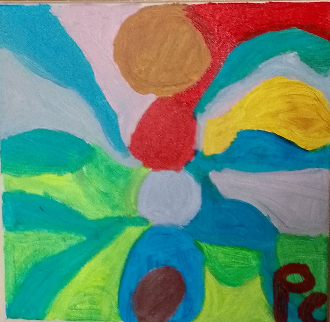 NEL QUADRO I COLORI L'ARTISTA DIPINGE UOVA SFERE E TRIANGOLI COLORATI PER COMUNICARE AL FRUITORE I COLORI DELL'ARCOBALENO. E' UN QUADRO CHE CATTURA LO SGUARDO UMANO E LO TRASCINA IN UNA DIMENSIONE DI PURA CONTEMPLAZIONE. E' UN QUADRO CHE COMUNICA EMOZIONI DI GIOIA E DI BELLEZZA. IL QUADRO APPARTIENE ALLA CORRENTE DELL'ASTRATTISMO GEOMETRICO.LE UOVA SONO IL SIMBOLO DELLA SPERANZA E DELLA FECONDITA'. IL TRIANGOLO E' IL SIMBOLO DELLA PERFEZIONE E DELL'EQUILIBRIO. E' UNA FIGURA GEOMETRICA ELEMENTARE DOTATA DI POCHI LATI. INDICA LA TENACIA E IL RAGGIUNGIMENTO DEGLI OBIETTIVI.LA BASE ALLUDE ALLA LOTTA, AL VIAGGIO, IL VERTICE RAPPRESENTA L'OBIETTIVO. INDICA DINAMISMO E PERSEVERANZA QUINDI ENERGIA. L'UOVO E'IL SIMBOLO DEL RINNOVAMENTO DELLE EMOZIONI POSITIVE E DELLE NOVITA' NELLA VITA. INDICA L'ARCHETIPO IN GRADO DI RIPORTARE OGNI ELEMENTO ALLA SUA PUREZZA ORIGINARIA, RISANA LA CORRUZIONE DELLA MATERIA. IL QUADRO COMUNICA UNA LINEA CONTINUA CHE SI AVVOLGE ATTORNO AD UN PUNTO FISSO , SENZA MAITORNARE SU SE STESSA . I COLORI DOMINANTI SONO IL GIALLO E IL ROSSO CHE COMUNICANO EMOZIONI DI FORZA E DI PASSIONE.I COLORI BLU E AZZURRO COMUNICANO EMOZIONI DI SERENITA' . IL COLORE BLU E' IL COLORE DELLA FELICITA' CHE EVOCA LA SENSAZIONE DI LIBERTA'.